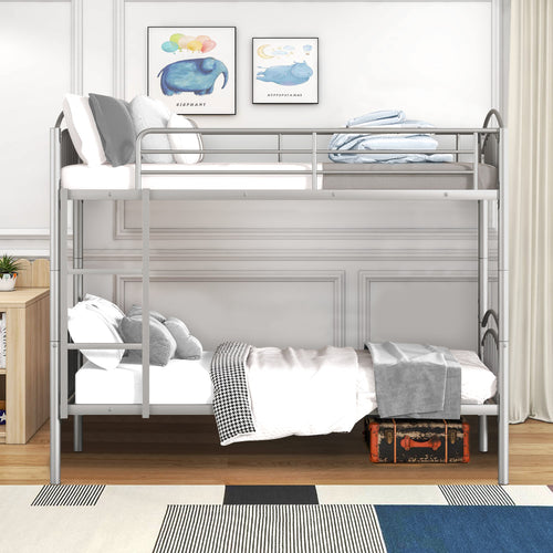iRerts Twin Over Twin Bunk Bed, Metal Bunk Bed Twin Over Twin for Kids Teens Adults, 2 in 1 Convertible Bunk Bed with Safety Guard Rails, Twin Bunk Bed for Small Rooms Bedroom Dormitory, Silver
