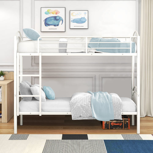 iRerts Twin Over Twin Bunk Bed, Metal Bunk Bed Twin Over Twin for Kids Teens Adults, 2 in 1 Convertible Bunk Bed with Safety Guard Rails, Twin Bunk Bed for Small Rooms Bedroom Dormitory, White