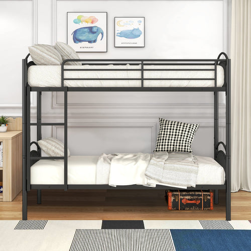 iRerts Twin Over Twin Bunk Bed, Metal Bunk Bed Twin Over Twin for Kids Teens Adults, 2 in 1 Convertible Bunk Bed with Safety Guard Rails, Twin Bunk Bed for Small Rooms Bedroom Dormitory, Black