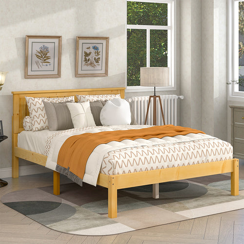 iRerts Wood Bed Frame Full Size with Headboard, Modern Full Platform Bed Frame with Slat Support for Bedroom Apartment, Full Bed Frame No Box Spring Needed, Natural