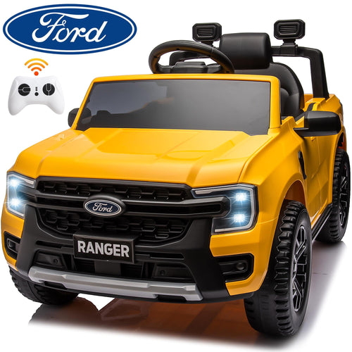 iRerts Yellow 12V Ford Ranger Powered Ride on Car with Remote Control, Kids Electric Car for Boys Girls 3-6 Ages, Kids Ride on Toys with Bluetooth, Music, USB Port, Horn, LED Lights