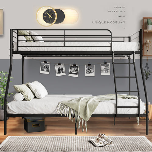 Twin over Full Bunk Bed for Adults Teens Kids, iRerts Industrial Metal Bunk Beds Twin over Full, Twin over Full Bunk Bed with Safety Guardrail, No Box Spring Needed, Space-Saving, Black