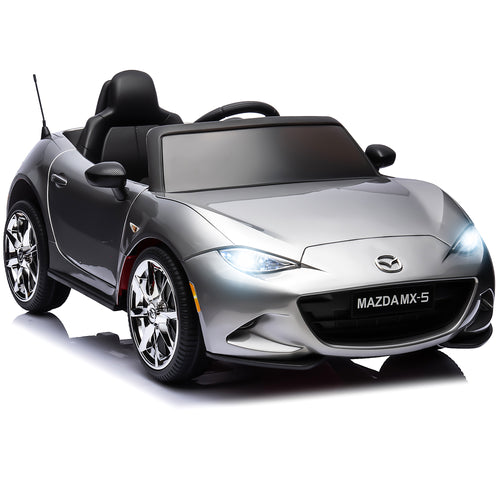 iRerts Silver 12V MAZDA MX-5 RF Ride on Cars with Remote Control, Electric Cars for Kids Boys Girls 3-6 Ages Gifts, Battery Powered Kids Ride on Toys with Music, Bluetooth, USB, MP3, LED Lights