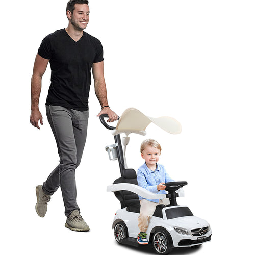 iRerts Toddlers Push Car, Mercedes Licensed 3 in 1 Kids Ride On Push Car for Boys Girls, Toddler Ride on Toys for Age 1-3, Ride on Cars with Handle, Removable Canopy, Music, Horn, Cup Holder