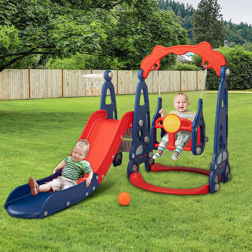 iRerts Toddler Swing and Slide Play Set, 3 In 1 Kid Toddler Outdoor Playset, Kids Play Climber Slide Playset with Basketball Hoop, Toddler Swing Set for Indoor Backyard, Outdoor Toys for Kids 1-8 Ages